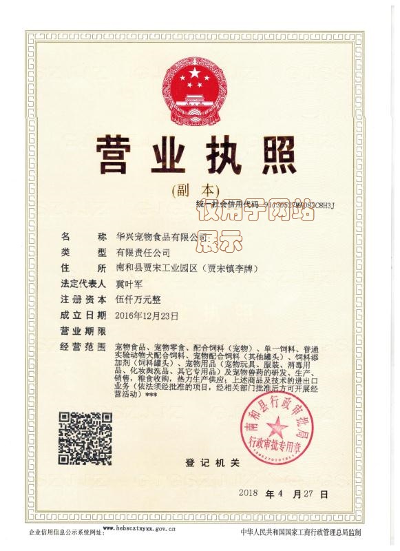 華興公司營業(yè)執(zhí)照和生產(chǎn)許可證